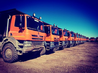 | 8x6os hajtásláncú Mercedes Arocs (3 db) | KRAZ-255 (5500 l kapacitású) |